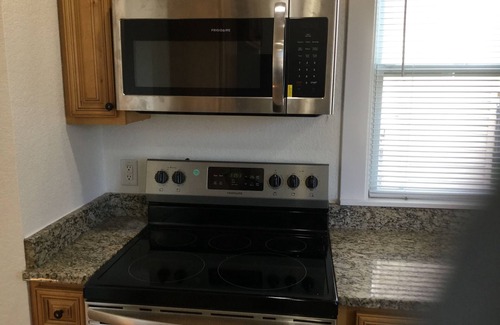 New modern appliances such as, refrigerator, stove, oven, microwave, dishwasher and coffee maker.