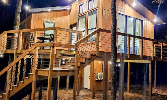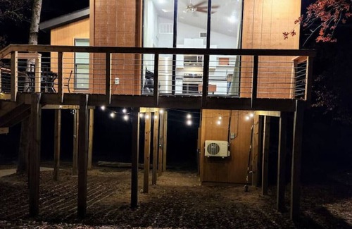 Reconnect with nature at this unforgettable escape. This tree house is sitting on stilts among trees where a beautiful oak tree comes through the elevated outside dining patio area. The tree house is located on our 15 acres of wooded property with approx. 1 mile in walking trails in the woods on the property for exploring and observing wildlife. Our guests frequently notice our deer and other woodland creatures who share this space with us.