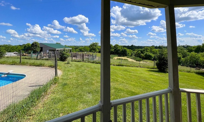 Escape to the best of KY farm life! Our private basement suite on a 54-acre working farm offers a unique retreat surrounded by breathtaking nature & friendly farm animals. Embrace rustic charm w/open floor plan, cozy beds, well-equipped kitchen & luxurious bathroom with new GE washer and dryer. Cool off in the seasonal salt pool & enjoy stunning views. Immerse yourself in nature & meet alpacas, donkeys, sheep, goats, pigs & more! Schedule a Guided or Enhanced Farm Tour at Free Radical Ranch. Book your unforgettable farm experience today!