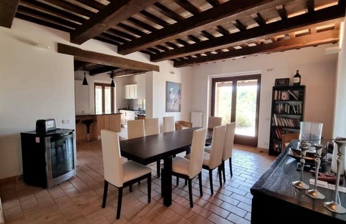 Spread over two floors, Villa Il Tramonto can accommodate up to 10 people, with 4 bedrooms and 3 bathrooms, a fully equipped kitchen, and a working fireplace, which can be used during the winter months. Pets are welcome and there is free Wi-Fi and a parking area for cars.