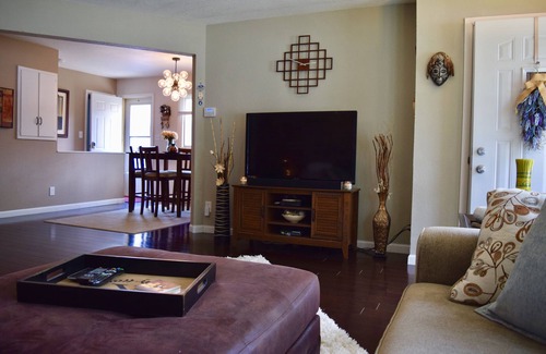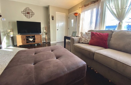 Enjoy this recently remodeled home painted in earth tones, hardwood engineered floors, white trim, remodeled bathrooms, new carpeting, stainless steel appliances, granite countertops, dishwasher, washer/dryer, Wifi and central air. Master Bedroom has a Queen bed with an attached half-bath and the other two bedrooms have Doubles. Home provides shampoo, conditioner, dish/hand soap, laundry detergent, garbage bags, paper towel, fresh linens, light cleaning supplies and coffee for your initial stay.