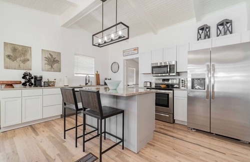 Step inside to discover a completely remodeled interior with refinished hardwood floors, a gourmet kitchen with stainless steel appliances, and spa-like bathrooms that invite relaxation. Every detail has been thoughtfully curated—from plush, cozy beds to brand-new furnishings throughout—creating a space that feels like home, but stocked like a boutique hotel.