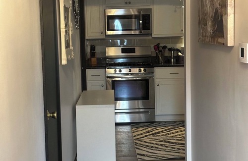 Newly renovated 2 bedroom 1 bath duplex townhouse with washer & dryer and back deck. All stainless steel appliances with dishwasher, microwave, and extra large deep sectional sofa for extra sleeping area if needed.