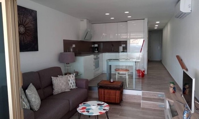 Renovated 1-bedroom apartment with sea view is located in Maspalomas. Renovated 1-bedroom apartment with sea view provides accommodation, featuring Balcony/Terrace, Fireplace/Heating, Internet, among other amenities. This Apartment features Balcony/Terrace, Fireplace/Heating, Internet, to make your stay a comfortable one.