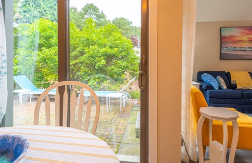 New Seabury ~ This private 2 story condo townhome is located at the end of a cul de sac in the Mews Area of New Seabury. It is the perfect summer getaway for you and your family! It offers an open & sunny floor plan, The entire unit has just been completely renovated with stainless steel appliances, dishwasher, wine cooler, Smart TV, WIFI, and washer and dryer. The condo has central Air and sleeps 4 comfortably with the option for more guests on a queen sleep sofa in the living room. The first floor bedroom has two twin beds, large closet with a built in dresser. A full bathroom with a tub is across the hall. The second floor offers a master bedroom with a queen bed & a large full bath with walk-in shower and motorized skylight The master bedroom has a full closet with sliding mirrored doors, dresser, and 3 windows with room darkening shades for an afternoon nap or the option to sleep late. The living room has a 55" Smart TV with cable access, large overhead motorized skylight and a ceiling fan for the cooler evenings. The kitchen has ample storage for all the necessary cooking equipment which is provided preparing a great family meal. There are 2 bar stools for having a snack and a kitchen table with 4 chairs for seated dining. Two sliding glass doors one off the dining area and one off the Livingroom lead you to a private brick patio with a propane grill, lounge chairs, and a bistro table and chairs for all your summer cookouts. There is a side yard that can be used for outdoor play area. All linens, towels and beach towels are provided. The kitchen is fully stocked kitchen with dishes, coffee pot and Keurig, toaster oven, paper towels, cooking utensils, soaps for laundry and dishwasher, grilling tools, and other kitchen essentials. To enjoy the beach, South Cape beach is less than 2 miles away or a Town of Mashpee parking pass is available upon request for an additional fee of $50 dollars a week. There are numerous walking trails and dunes to beaches in the Waquoit Bay Reserve. The location offers plenty of things to do! Just a quick 3-minute drive to the family friendly Popponesset Marketplace, home of the world-famous Raw Bar, as well as shops, mini-golf, bike rentals and a general family store. Also conveniently located just 8-10 minutes away to Mashpee Commons which has everything you need from 2 large grocery stores, several good restaurants, major brand clothing stores, movies and bowling. There is the option for a quick ride to Falmouth for shopping and ferries to the Martha' Vineyard for a day trip. No pets please. Seven-night minimum stay.