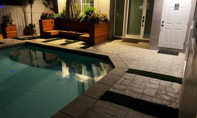 Yes, this Hawthorne house has a swimming pool. Check the Facility Overview section for details about the pool and other available facilities.