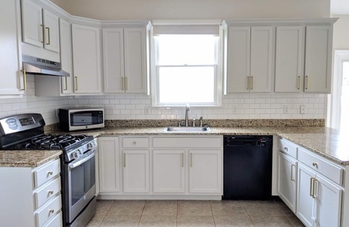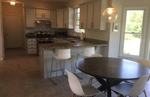 This freshly renovated home is a dream family vacation spot. It's private and quiet with enough space to get comfortable—four bedrooms, two-and-a-half bathrooms, set on a sunny, fenced-in acre of land in a cul-de-sac.