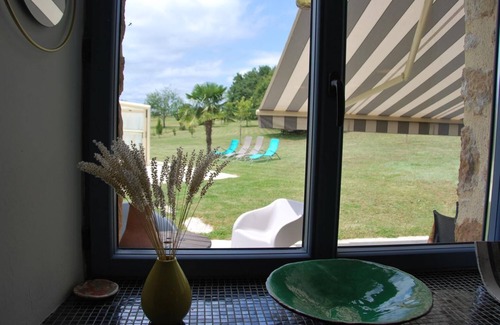 Renovated barn of 180m² in a quiet area is located in La Dornac. Renovated barn of 180m² in a quiet area provides accommodation, featuring Private Pool, Child Friendly, Internet, among other amenities. This House features Private Pool, Child Friendly, Internet, to make your stay a comfortable one.