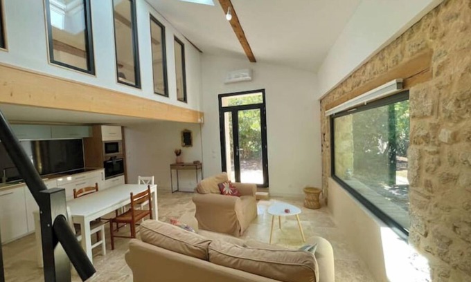 Renovated barn, private garden and shared pool is located in Poussan. Renovated barn, private garden and shared pool provides accommodation, featuring Air Conditioner, Parking, TV, among other amenities. This Villa features Air Conditioner, Parking, TV, to make your stay a comfortable one.