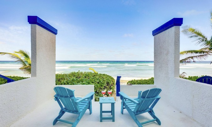 Forget your worries and unwind in this spacious and serene beachfront condo.