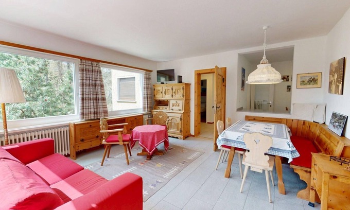 Renovated, beautiful holiday apartment on the 1st floor with a fantastic view. | Apartment in Pontresina