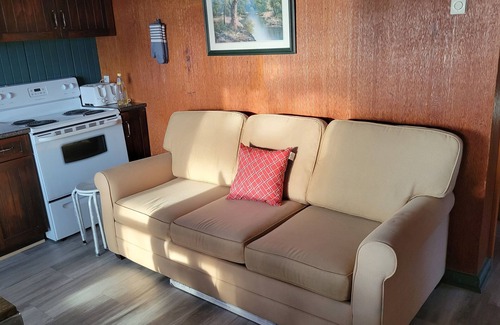 The newly renovated cottage at 22 chemin ,whitefish has 3 bedrooms, a living room, a fully equipped kitchen, and a bathroom. The bedrooms feature comfortable beds and cozy bedding, allowing guests to rest comfortably after a long day of fishing. The living room has a comfortable sofa, and chairs, providing a perfect spot for guests to unwind and enjoy a good book.