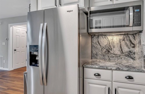 Come on in, take a load off, and sink right into the cozy leather couch! There is plenty of room for everyone to relax to together and feel at home. The large flat screen TV offers the perfect spot for a movie night or enjoy your favorite cable TV show. The beautiful kitchen comes fully stocked with everything you would need to cook up your favorite meals! Stainless steel appliances, granite countertops, and lots of room make this kitchen fit for a chef! We also have both a Keurig and a regular coffee pot for all you coffee lovers! Then pull up a chair for breakfast with your loved ones around the dining room table or pull up a seat at the bar to keep the cook company.