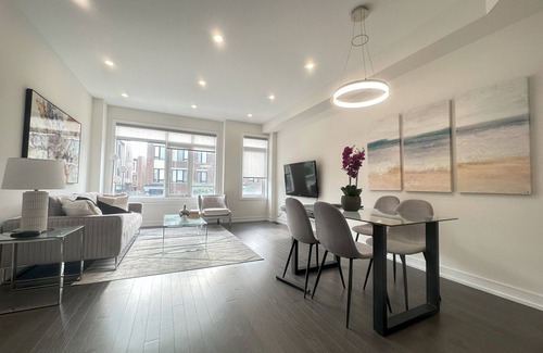 Renovated Modern 4BR/4BA Townhome w/Garage Parking – Sleeps 6+ is located in Vaughan. Renovated Modern 4BR/4BA Townhome w/Garage Parking – Sleeps 6+ provides accommodation, featuring Wellness Facilities, Fireplace/Heating, Child Friendly, among other amenities. This House features Wellness Facilities, Fireplace/Heating, Child Friendly, to make your stay a comfortable one.