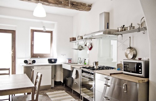 The former pharmacist House offers modern and comfortable amenities and cozy ambience in the middle of the small and traditional village of Mili. The large, light-flooded rooms were renovated in 2009 and tastefully and simply furnished. The house is ideal as a holiday in any season for 6 persons. The house has a well equipped kitchen with large dining table. The semi-professional gas stove and oven (either gas or electric operation) invite you to cook, the dishwasher avoids the subsequent washing dishes. Directly to the kitchen closes at the small but cozy courtyard. In the warmer months you can already enjoy the breakfast and evening use the grill. An awning protected from direct sunlight and a hammock invites you to relax. But even in winter you can enjoy as many hours out there, because the yard is protected from all sides.