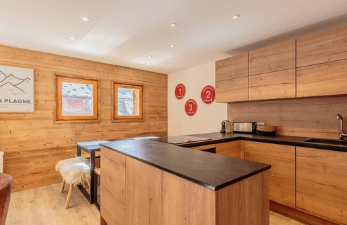 Renovated ski-in chalet, 4 bedrooms, Plagne Soleil is located in Plagne Soleil. Renovated ski-in chalet, 4 bedrooms, Plagne Soleil provides accommodation, featuring Parking, TV, Balcony/Terrace, among other amenities. This House features Parking, TV, Balcony/Terrace, to make your stay a comfortable one.