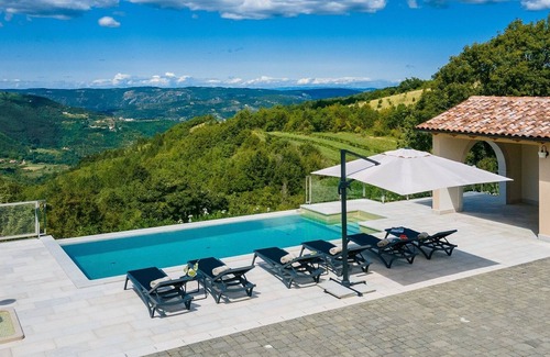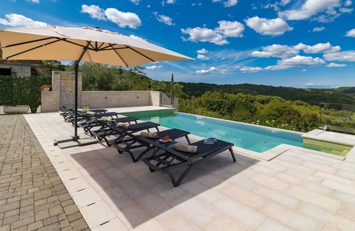 Villa Grazia is a renovated stone house, located at the top of a hill, offering a unique view of the green valley and Lake Butoniga. Holiday Home Grazia covers an area of 147 m2 on two floors. On the ground floor (basement) there is a newly renovated kitchen with dining area, a new living room. From the living room, stairs lead to the first floor of the house, where there are three double bedrooms and three bathrooms. In the fenced, beautifully landscaped yard in front of the house, guests can enjoy the infinity heated pool with a beautiful view of green Istria. Guests also have at their disposal a fully equipped summer kitchen with a dining table and a grill. Spend unforgettable moments with your family or friends in this exceptional home. Note: Swimming pool heating on request is paid additionally on the spot.