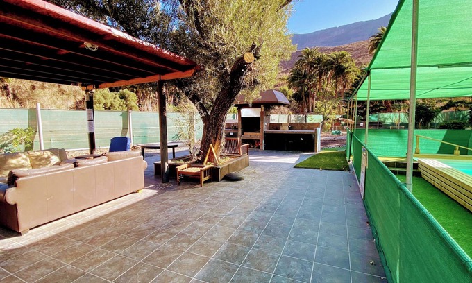 This Property is surrounded by a breathtaking environment of Canarian Palm trees and the mountainous valley, but just 20 minutes' drive to/from Maspalomas, the main beaches and the 'more common' tourist attractions..