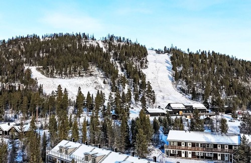 "Renstråket 1001", 3-room apartment 52 m2, on the ground floor. Bright, very modern and tasteful furnishings: open living/dining room with panoramic window. Exit to the terrace, south-west facing position. 1 double bedroom with 1 double bed (160 cm, length 200 cm). 1 large room with 1 bed (90 cm, length 200 cm), 1 x 1 bunk beds (90 cm, length 200 cm) (120 cm, length 200 cm). Open kitchen (oven, dishwasher, 4 ceramic glass hob hotplates, toaster, kettle, microwave, freezer, electric coffee machine). Shower/WC, Sauna. Electric heating. Parquet floors. Panoramic view of the mountains and the forest. Facilities: children's high chair, baby cot. Internet (WiFi, free). Please note: non-smoking house. Smoke alarm, fire extinguisher.