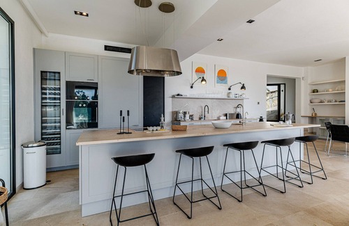 Relax in the stylish lounge with a cosy fireplace, work in the spacious home office, or unwind in the gym before selecting a bottle from the wine cellar to enjoy as the sun sets over the sea.The modern kitchen is fully equipped for gourmet cooking, and the open-plan dining area or the outdoor terrace beneath the stars sets the scene for unforgettable meals.
