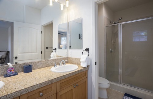 The property has 3 bedrooms, the master bedroom has a king size bed, air conditioning and a ceiling fan and the master bathroom has two vanities, a large soaking tub/shower separate toilet facility and a large closet. The second bedroom has a king size bed, ceiling fan and a hallway bathroom which has a vanity and a shower/tub combination. The third bedroom has a queen bed, a ceiling fan and a hall bathroom which is a shared guest bathroom with a shower/tub combination and large vanity. The bedrooms are fully equipped with high quality luxury hotel quality bed linens and the bathrooms are equipped with excellent towels. We also provide high quality cabana towels for your use and enjoyment at the pool or local beaches. Linens and towels are inspected on a regular basis and are cycled frequently to ensure quality and comfort. You will also find a hair dryer in the master bathroom and an iron in the master.