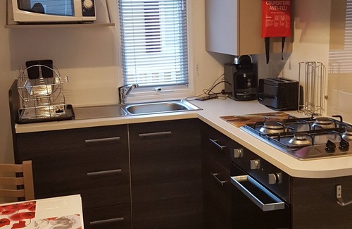 Rental Mobile home new 6 to 8 people is located in La Cote Radieuse. Rental Mobile home new 6 to 8 people provides accommodation, featuring Air Conditioner, Balcony/Terrace, Security/Safety, among other amenities. This House features Air Conditioner, Balcony/Terrace, Security/Safety, to make your stay a comfortable one.
