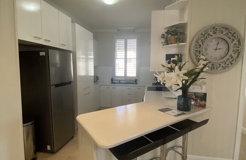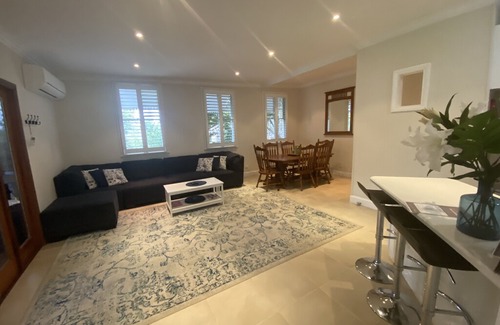 It’s easy to find, in a pretty Jacaranda lined street with similar homes. Owned and adored by Andrew who prides his home as being uncluttered and clean. He has updated the cottage to ensure guests are super comfortable all year round whatever the weather with all 4 bedrooms and 2 living area fitted with air-conditioning and a charming fireplace.