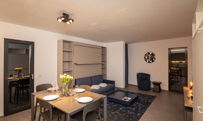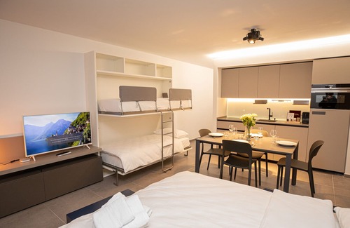 A second-floor (with lift) studio, which sleeps up to 4 people, in a contemporary residence, with its own bistro, this apartment is an ideal base for a holiday or for a business trip in the region of Ticino.