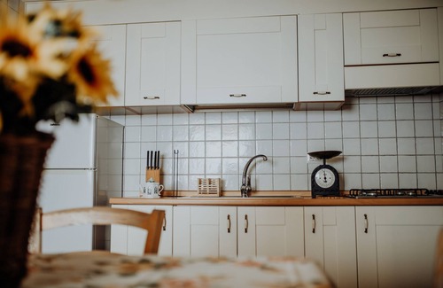 The apartment with a double bedroom, kitchen / living room with hand-crafted opium sofa bed and orthopedic mattress, internal ceramics of glassware, laundry room and sea view balcony is finely furnished and cared for down to the smallest detail.