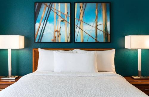 Within 2 mi of Interstate 805, this all-suite San Diego hotel features an outdoor pool, sports court and suites with free WiFi and a full kitchen. The San Diego Zoo is 14 mi away. A flat-screen TV, a work desk and a dining area are provided in all spacious suites at the Residence Inn San Diego Sorrento Mesa/Sorrento Valley. Additionally, there is a sofa bed in each suite. Guests can enjoy table tennis, work out in the fitness room or relax in the hot tub at this hotel. The San Diego Residence Inn offers barbecue grills on the patio for guests’ use The Market located on-site is open 24/7 and offers a wide variety of beverages, snacks and frozen foods. A daily hot breakfast buffet and Social Hour each evening are included for all guests. A free grocery shopping service is available. Torrey Pines Golf Course is 5.5 mi away from this hotel. SeaWorld San Diego and the San Diego International Airport are both within 25 minutes' drive away.