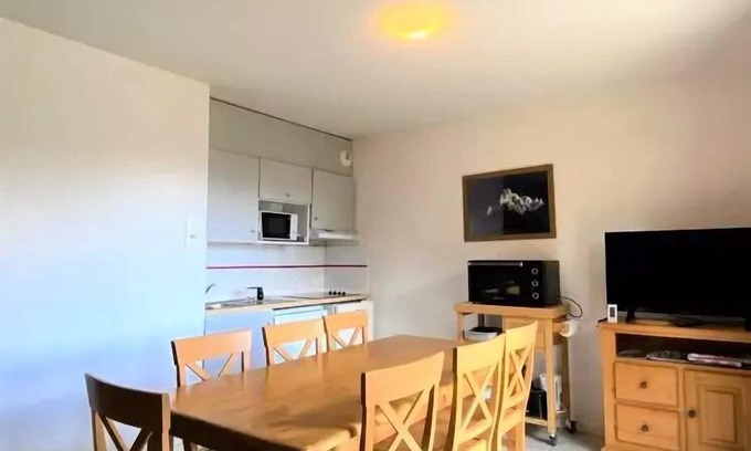 Details: Near airport : Lyon Saint-Exupéry Airport #LYS (145.8 km), Marseille Provence Airport #MRS (157.0 km), Belle-Côte D'Azur Airport #NCE (186.2 km), Geneva Cointrin International Airport #GVA (173.0 km) Deposit (in euros) : 500 Ski locker Pets Allowed Microwave oven Dishwasher Car park Television Balcony Heated pool Number of bathroom : 1 Number of bedrooms : 2 Number of pieces : 3 Number of double bed : 1 Number of single beds : 5 Surface (m²) : 43 Distance Tracks : 350 metres Distance Ski School : 350 metres Number of cabins Number of toilets Floor Cooked : 1 Heating : 1 Dishes and cutlery : 1 Number of stars : Unclassified
