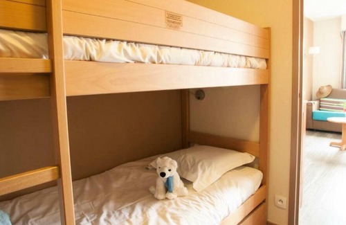 Living room with & nbsp; 1 double sofa bed - & nbsp; Kitchen area open to the living room - Corner cabin with 2 bunk beds (recommended for children) - Bathroom with bath and 1 toilet.