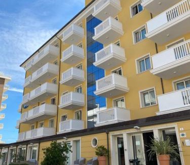 Set on the seafront in Rimini's Miramare area, Residence T2 offers modern suites with free Wi-Fi and air conditioning. Suites have a contemporary design with light-wood furniture and a new bathroom with a hairdryer and toiletries. They also feature a private balcony. Breakfast is served at a partner property 164 feet away. T2 Residence features a private parking garage, as well as a TV lounge, and a bar. Guests have discounts at a few local restaurants, just ask staff for recommendations. The residence is just across the road from the beach and a 5-minute drive from Federico Fellini Airport. There are plenty of restaurants, cafés and shops in the neighborhood.