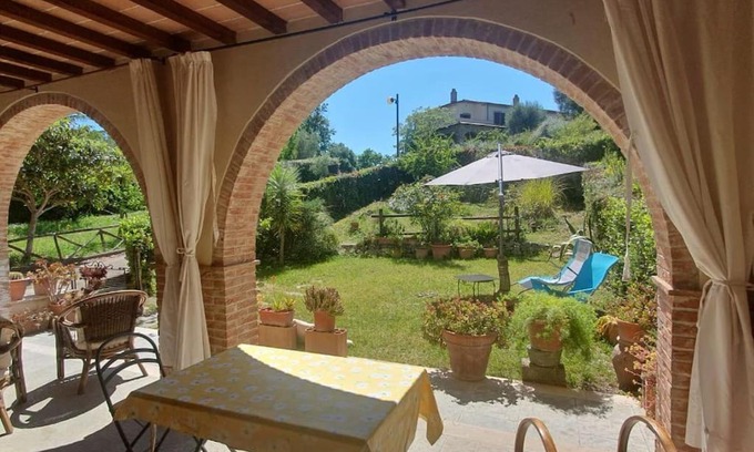 Offering a garden, Residenza Anna features accommodations in Montemerano. The air-conditioned accommodation is 3.1 miles from Cascate del Mulino Thermal Springs. Free Wifi is available throughout the property and Mount Amiata is 29 miles away. Featuring a terrace and garden views, the spacious apartment includes 2 bedrooms, a living room, flat-screen TV, an equipped kitchenette, and 1 bathroom with a bidet and an a bath or shower. Towels and bed linen are offered in the apartment. The property has an outdoor dining area. The apartment has a picnic area where you can spend the day outdoors. Fiumicino Airport is 85 miles from the property.