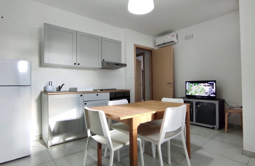 The other two apartments (Corbezzolo and Melograno) are located on the ground floor, with a few steps at the entrance. Corbezzolo has 2 bedrooms (one double with an additional single bed and one twin with two single beds), a sofa bed in the living room, a fully equipped kitchen, and a complete bathroom with a shower. Melograno has 3 bedrooms (one double with an additional single bed, one twin, and a third room with a bunk bed), a living room with a fully equipped kitchenette, and two comfortable full bathrooms. Finally, both apartments feature a veranda furnished with a table and chairs.