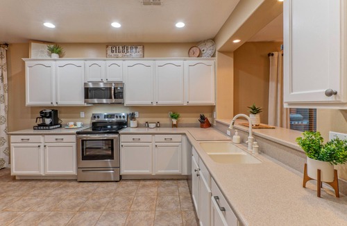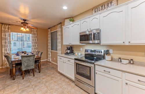This family friendly home in a peaceful Gilbert neighborhood with quiet streets and sidewalks could be your ideal home away from home. The location is perfect for golfing, hiking, biking, sightseeing, dining out and more. Gilbert has been recognized as one of the best and safest places to live in the United States. Downtown Gilbert, called the Heritage District by locals, is a top dining place in the greater Phoenix area. Riparian Preserve at Water Ranch is 110 acres of trails and wildlife habitats and a must for the outdoor enthusiast. Take your binoculars to help you spot Jack Rabbits, Roadrunners and migrating water fowl. Gilbert Regional Park has sports courts and a splash pad with 57 different water features. Don't miss the equestrian and multi use trails at Zanjero Park, the museum of natural history or the Arizona Science Center. Hop on our modern highway system to visit Tempe, Mesa, Phoenix and Scottsdale.