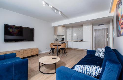 A 3-minute walk from Rewal Beach in Rewal, Resort Apartamenty Klifowa Rewal 53 provides accommodations with access to a fitness center. This beachfront property offers access to a terrace, free private parking, and free Wifi. During your stay at this apartment, you can use an indoor pool, as well as a selection of a hot tub and full-day security. The apartment consists of 1 bedroom, a living room, a fully equipped kitchenette with a dishwasher and a coffee machine, and 1 bathroom with a walk-in shower and a hot tub. Towels and bed linen are featured in the apartment. The accommodation is non-smoking. For guests with children, the apartment offers a children's playground. Niechorze Beach is 1.8 miles from Resort Apartamenty Klifowa Rewal 53, while Town Hall is 30 miles away.