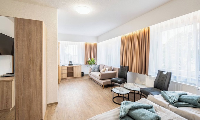 Resort Dreistern - DZ 14, DZ 14 - Pension Resort Dreistern has 1 Bedroom , 1 Bathroom, and max occupancy of 4 people. The minimum rental for this property is 1 nights, but this can change depending on the season you plan on staying. Previous guests have given good rated it, and VRBO labeled it a top-rated Apartment because of the excellent services rendered by the owner or manager of this Apartment, and has consistently provided great experiences for their guests. Most families or guests that use it recommend it to their friends and some of them are repeat guests. Apartment has a friendly neighborhood, and the Goeda has interesting places to visit. If you want to learn more about the Apartment in Goeda, such as places to visit and things to do nearby, you can check below to learn more.