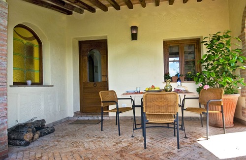The cottage "Pomantello" from the 17th century. Century is picturesquely situated on a hill and offers a unique panoramic view over the fields, the adjacent nature park Monte Rufeno and the medieval village of Torre Alfina.