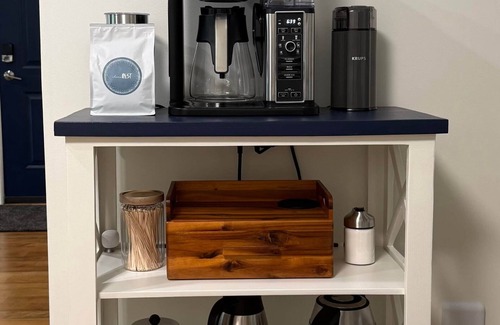 The lower level features a second kitchen and living area (with Queen sofa bed) and two Queen bedrooms, shower bathroom,laundry room, and a walk out patio with fire pit area, mere steps from the lake. You will be able to access the lower level via an interior staircase, exterior staircase, or a sloped concrete path with a zero-step entry. Sip your favorite beverage and reminisce with your favorite people in the comfortable outdoor seating area, roast marshmallows in the fire pit or play games on the shaded grassy lawn.