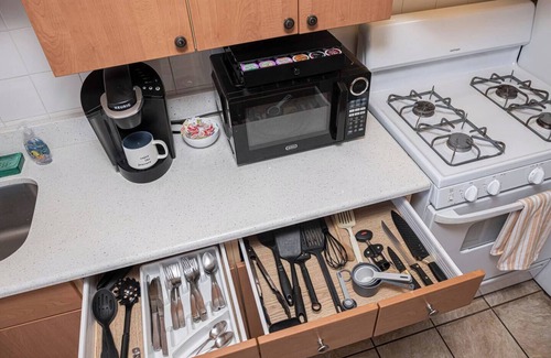 Welcome to Bryn Mawr, Pennsylvania! This comfortable 2nd floor apartment layout is cozy whether you are by yourself or in town with a large family of 7. It has an eat in kitchen for enjoying takeout or preparing a meal yourself. Each back bedroom comfortably fits 2 people for sleeping, the front br has a single bed, and the living room sofa doubles as a pull out couch. With ROKU on the TV you have an instant entertainment center. Wake up to free hot coffee prepared in the Keurig coffee maker.