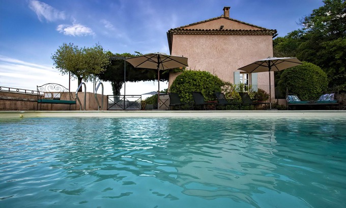 The 5x10m salt water heated swimming pool is just on the west side with uninhibited views of the Vaucluse and the Mont Ventoux. There is a variety of pool furniture and parasols. The pool is available and heated from May through September, and available unheated in October (closed Nov-April).