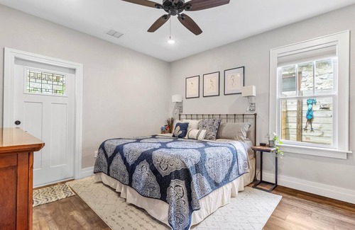 This two-bedroom, 2-bath cozy retreat has been fully restored and meticulously designed to offer a perfect blend of contemporary elegance and rustic charm. The chert stone and red brick exterior has the curb appeal of a quaint cottage, but inside you’ll find all the comforts of modern living.
