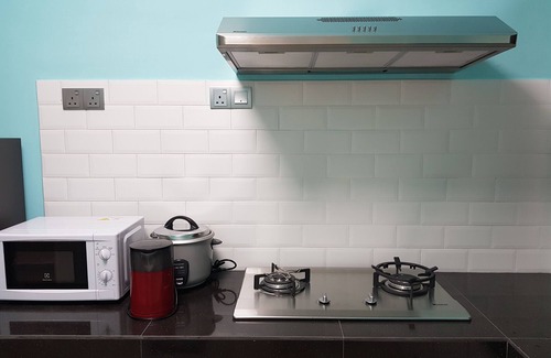 7. The kitchen has fridge, hood & hob, microwave, electric kettle and rice cooker.