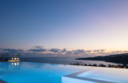 New Rethymnian Gem Luxury Villa is a dream house 300sq.m, has 6 bathrooms, 5 bedrooms, can accommodate up to 10 people, private pool 75metres, jacuzzi, BBQ, 200m from the sea, in the traditional village of Gerani, which is only 6 km from the center of Rethymnon. The impressive view of the house to the sea will take your breath away and will satisfy all your senses.