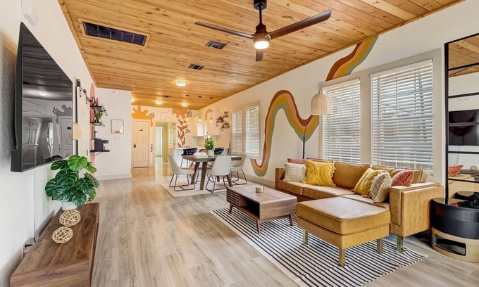 Welcome to Retro Retreat, your vibrant and fun-themed Rental in the heart of San Antonio! Immerse yourself in a lively atmosphere. Our cozy open-plan home is ideal for unwinding and relaxing.