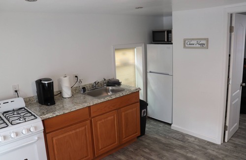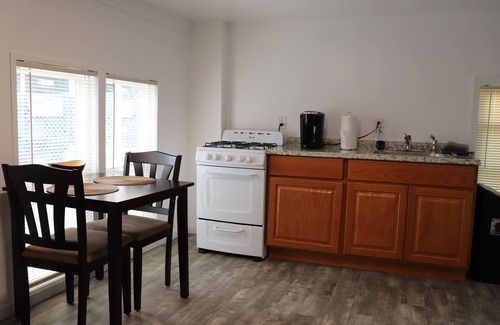 GeneralBed count minimum 4, Pet-friendly room, Number of living rooms 0, Kitchenette, Number of bedrooms - 2, Coffee/tea maker, Full-sized refrigerator/freezer, Microwave, Stovetop, Wheelchair accessible, Extra bed count 1, Number of bathrooms - 1, No cribs (infant beds), Oven, Bed count maximum 4 |