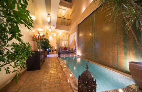 Riad Cocoon sits in the center of Marrakech, a 10-minute walk to Jamaâ El Fna Square. Its modern rooms feature personal iPods and guests can enjoy the small heated pool. Guest rooms at the Cocoon also have iPod docking stations and the iPods come with playlists. Each room is air-conditioned and equipped with free Wi-Fi internet access. Riad Cocoon offers a spa and traditional hammam, oriental massage and body treatments. The guest house has a panoramic terrace, with views of the Marrakech rooftops. There is also a bar and a restaurant, which serves Moroccan cuisine. A range of services is available at the Riad, such as laundry and dry cleaning and a tour desk. A shuttle service is also available for the Marrakech Menara Airport, which is 5.6 mi away.