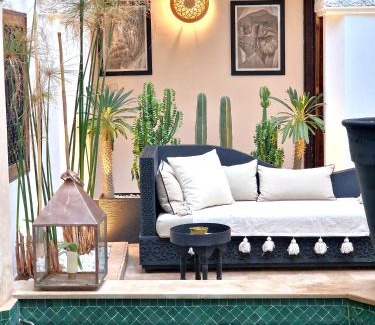 Riad Dar El Mahja is a bed and breakfast featuring rooms with free Wifi and air conditioning in the center of Marrakesh. With mountain views, this accommodation features a terrace. During your stay at this bed and breakfast, you can use an indoor pool, as well as a selection of a solarium and full-day security. At the bed and breakfast, the units include a wardrobe. Each room is fitted with a private bathroom with bathrobes, while some rooms have a fully equipped kitchen with an oven. At the bed and breakfast, each unit is fitted with bed linen and towels. À la carte and continental breakfast options with fresh pastries, pancakes, and fruit are available. The bed and breakfast offers a variety of wellness options, including a wellness packages, a beauty services, and yoga classes. Guests can also relax in the shared lounge area. Popular points of interest near the bed and breakfast include Le Jardin Secret, Mouassine Museum, and Majorelle Gardens. Marrakech-Menara Airport is 3.1 miles from the property, and the property offers a paid airport shuttle service.