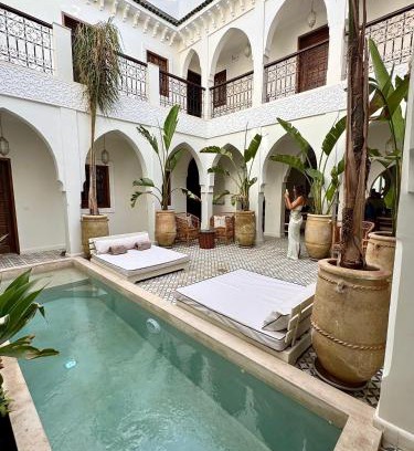 Riad Dar Melia is a riad featuring rooms with free Wifi and air conditioning in the center of Marrakesh. Guests staying at this riad have access to a patio. The riad provides a sun terrace and a 24-hour front desk. At the riad, all units are equipped with a wardrobe. There's a private bathroom with shower in every unit, along with bathrobes, a hair dryer, and free toiletries. The rooms are equipped with heating facilities. Continental and vegetarian breakfast options with local specialities, pancakes, and fruit are available. Guests can eat at the on-site restaurant, which is open for dinner, lunch, brunch, and high tea. The riad also features an outdoor swimming pool and a solarium for guests to relax in. Sightseeing tours are available in the vicinity of the property. Popular points of interest near Riad Dar Melia include Le Jardin Secret, Mouassine Museum, and Majorelle Gardens. Marrakech-Menara Airport is 3.1 miles away, and the property offers a paid airport shuttle service.